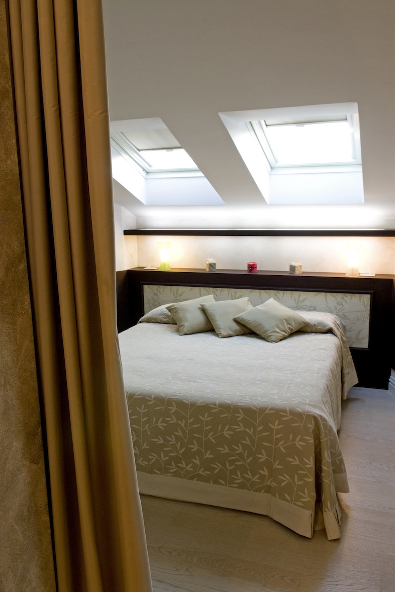 La suite in alto sulla torretta è uno splendore, unica, che ha arredato pezzo per pezzo con gusto ed eleganza. Una suite circondata dalle vetrate che danno da una parte verso il mare e dall'altra verso il borgo. E poi il bagno con quel colore rosso scarlatto; le poltrone, i lampadari, le tende, ogni cosa arricchisce con romanticismo la stanza.